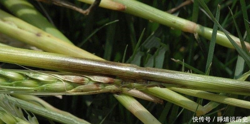 麦株拔节后,发病部位逐渐上移,产生基腐和鞘腐。抽穗前,多数病株基部1~2节的叶鞘变褐腐烂,叶鞘枯死后色泽逐渐濙化,由深褐色变为枯黄色,与病叶鞘相连叶片也变褐枯死。有时病部的茎秆上产生暗褐色稍凹陷的长条形病斑。抽穗后,植株上部叶鞘也陆续发病,此时基部病鞘上岀现子囊壳。上部叶鞘多由与叶片相连处开始发病,继而向叶片基部及叶鞘中下部扩展,病叶鞘变枯黄色至黄褐色,变色部多无明显的边缘,潮湿时,上面产生稀薄的红色霉状物。上部叶鞘发病可使旗下叶和旗叶枯死,为害严重。对矮丰3号、阿勃和孟县4号等3个品种的调查表明,叶鞘单独发病的植株占病株总数的51。3%,叶鞘和叶片全部发病的占39。5%,叶片单独发病的只占9。2%,可见鞘腐发病很普遍。